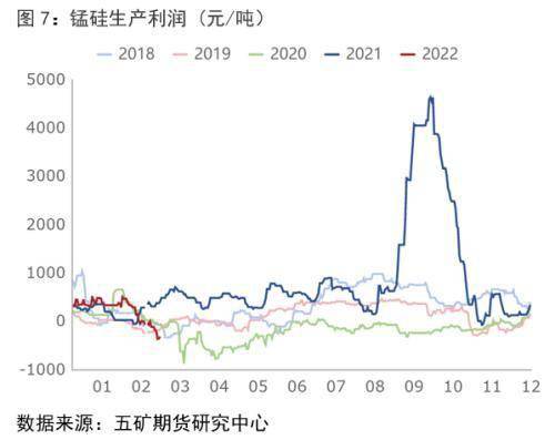 利潤方面,截止3月11日,錳硅內蒙生產利潤-322元/噸,環比+44元/噸,同比-724元/噸,利潤率-3.81%;錳硅廣西生產利潤 -877元/噸,環比+25元/噸,同比-608元/噸,利潤率-10.31%;硅鐵內蒙生產利潤954元/噸,環比-46元/噸,同比-729元/噸,利潤率11.29%;硅鐵寧夏生產利潤1433元/噸,環比-46元/噸,同比+49元/噸,利潤率16.86%;從產業鏈利潤的角度看,受礦價成本擠壓,錳硅北方產區利潤處于同期偏低水平,而南方產區虧損下產量依然受限。硅鐵利潤處于中等水平,低于去年同期水平。