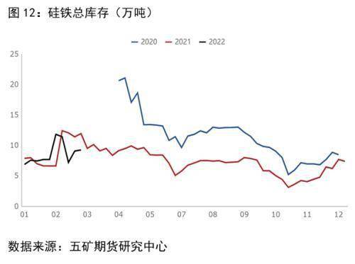 硅鐵總庫存(廠庫+交割庫)9.24萬噸 ,環比-0.53萬噸,-5.47%,同比-2.42萬噸,-20.78%。硅鐵廠庫6.44萬噸,環比-0.74萬噸,-10.25%。交割庫46.18萬噸,環比-2.67萬噸,-5.47%。硅鐵庫存水平較去年同期偏低。